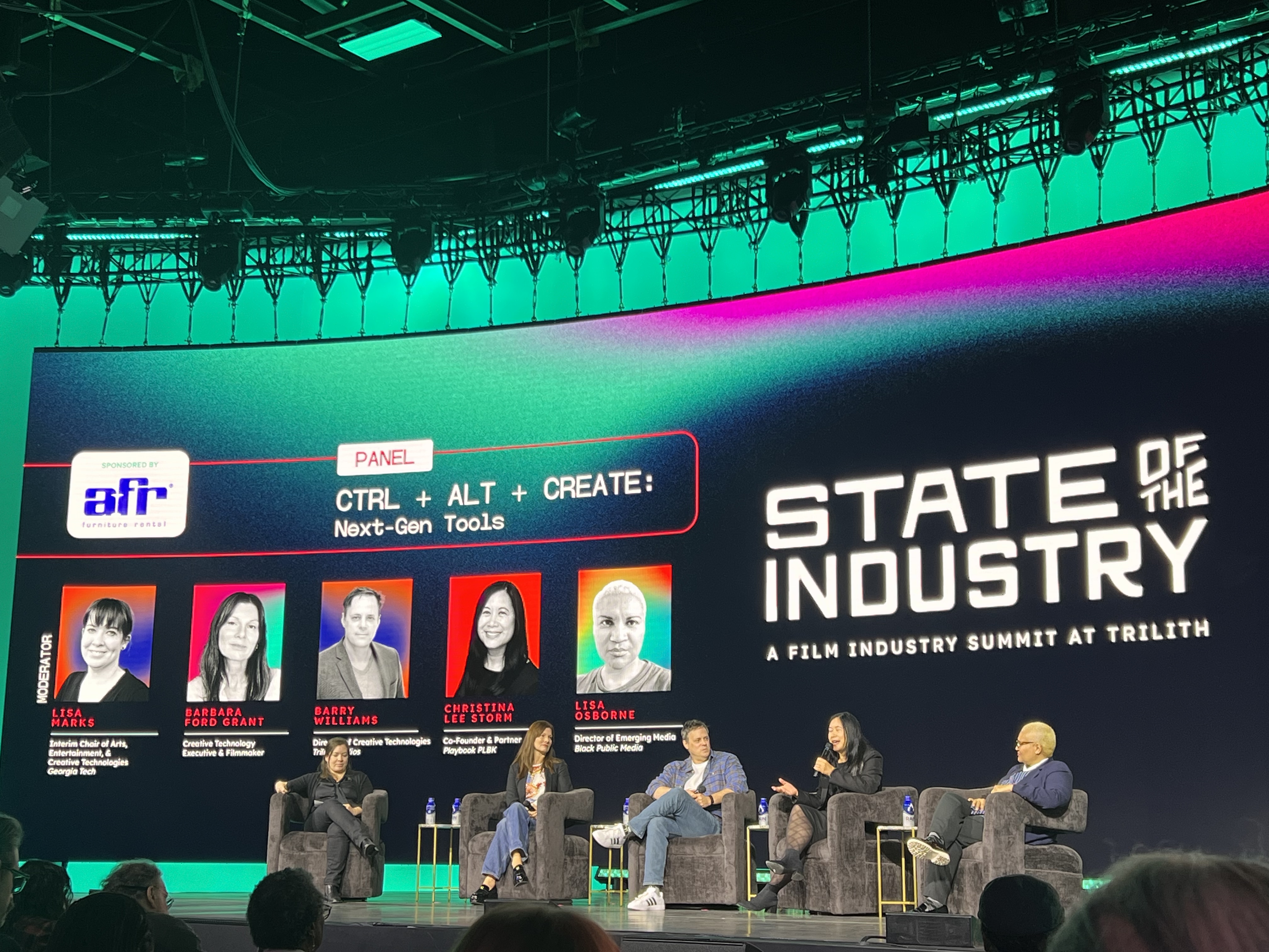 Georgia Tech Arts participated in the 2025 State of the Industry summit at Trilith Studios, co-sponsored by the Ivan Allen College of Liberal Arts and the College of Design. Lisa Marks, interim chair of the new School of Arts, Entertainment, and Creative Technologies, moderated the panel “CTRL + ALT + CREATE: Next-Gen Tools,” featuring industry leaders Christina Lee Storm, Barbara Ford Grant, and Barry Williams. The discussion explored how artificial intelligence is reshaping film production and emphasized the importance of creativity, ethics, and education in the future of media.