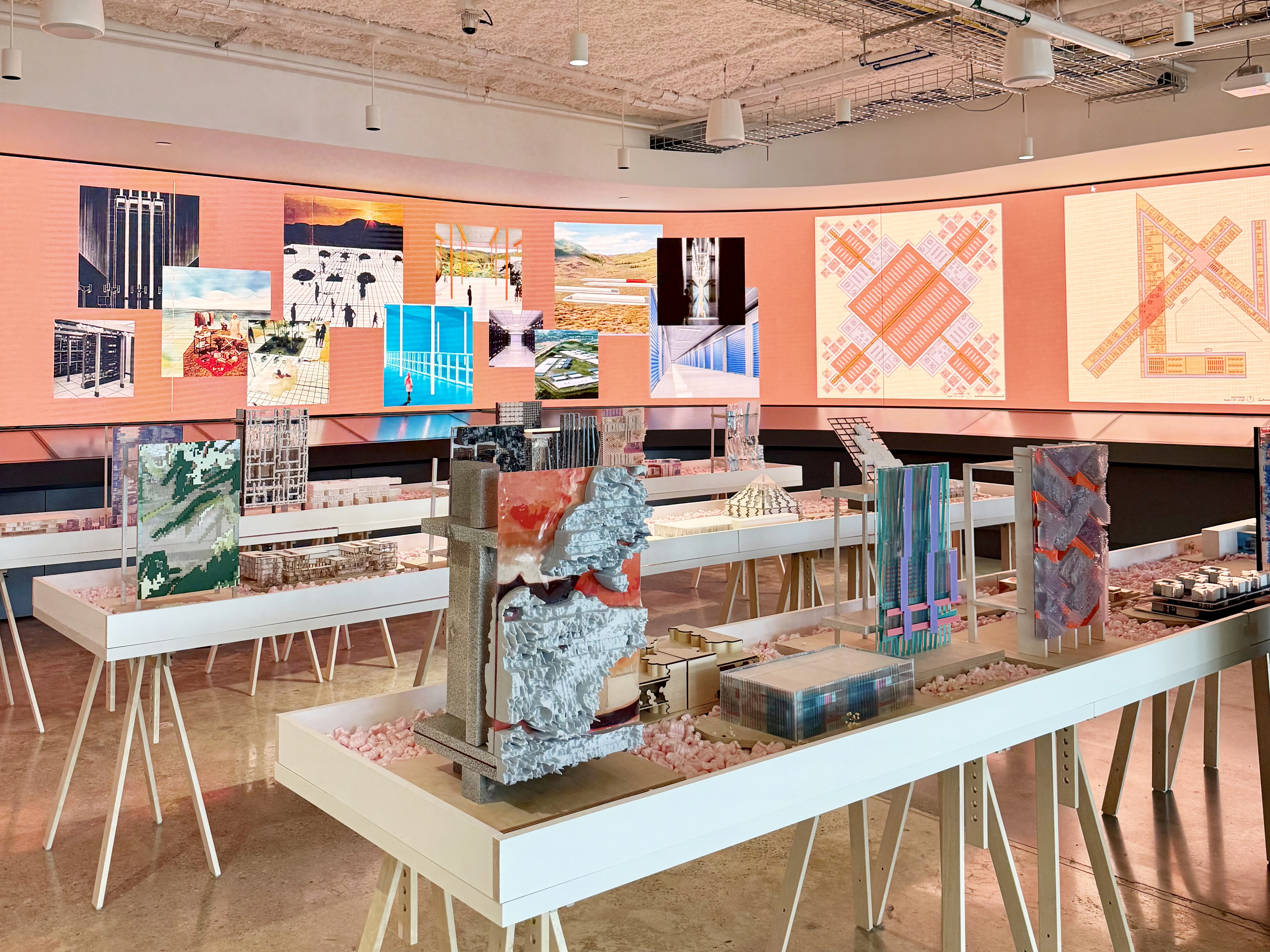 The physical exhibition pairs meticulously crafted models with drawings and digital media displayed across the IMZ’s integrated screens. Visitors encounter not only formal explorations, but also arguments about time, care, and surplus embedded in architectural form. Storage is revealed as an architecture of deferral — spaces designed to hold things temporarily, often indefinitely — and as a system that reflects broader social and economic conditions.