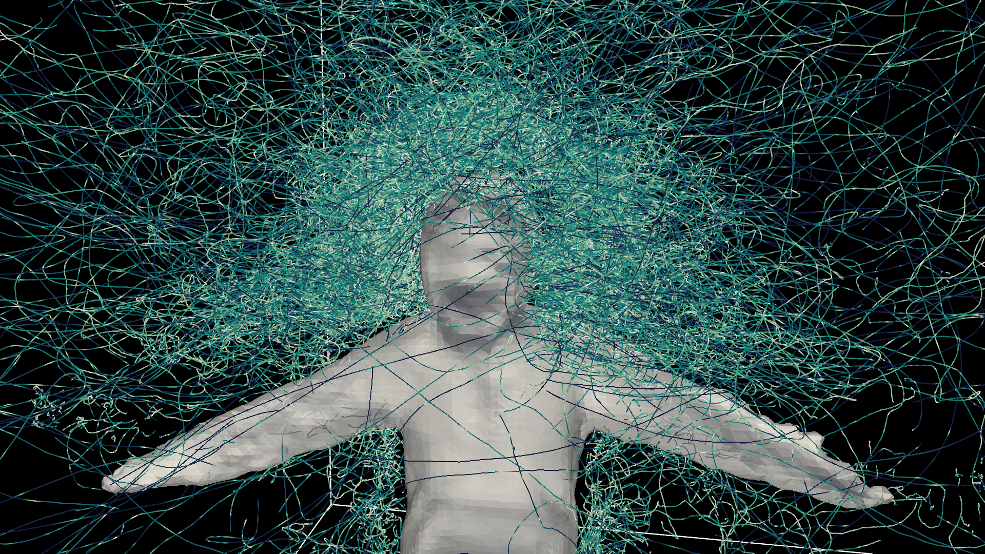 Enter Chris and his self-sacrifice in the mosquito room. By tracking the flight of many mosquitoes around him, we hoped to determine how they made decisions in response to his presence. Understanding how mosquitoes respond to humans is a first step to controlling them.